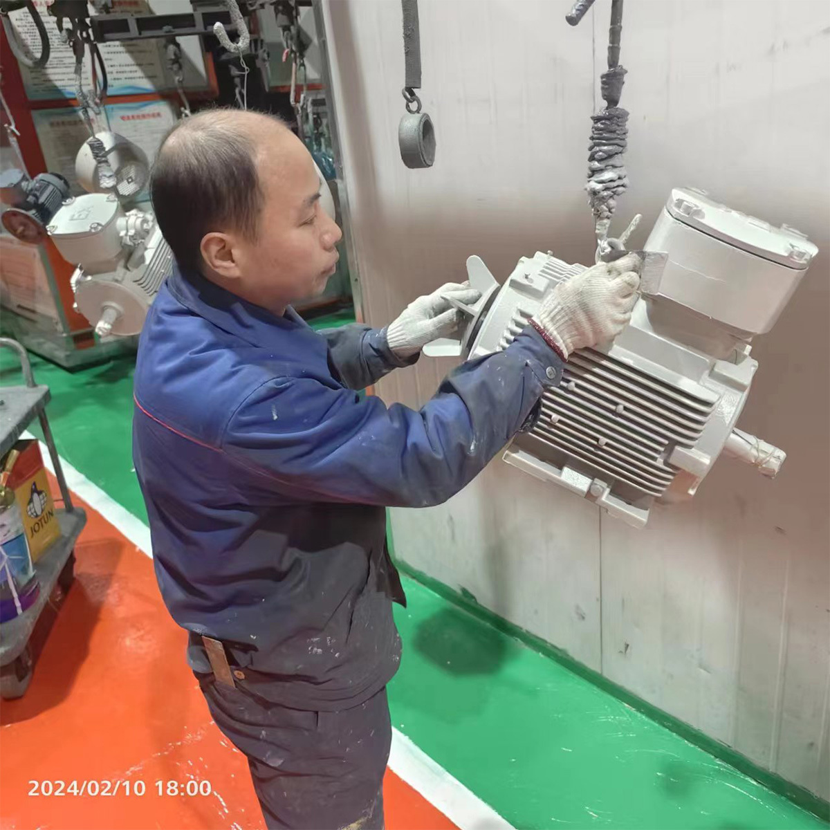 喷包车间喷漆工张永刚、孟宪武、刘安华、郭凤臣等职工,在春节时代,放弃与家人的团圆,坚守、斗争在各自岗位上,抢制项目电机喷漆进度,用行动诠释着责任和使命。