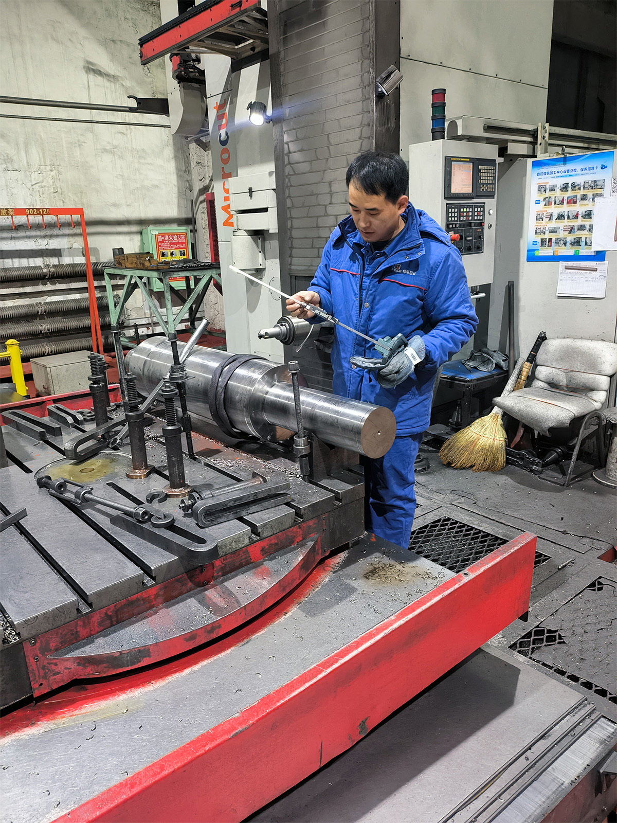 小型车间准备组镗铣工吴春强,自动放弃春节假期,抢制急要项目电机零部件,高标准严要求加工铣筋轴,确保整机装配正常举行。