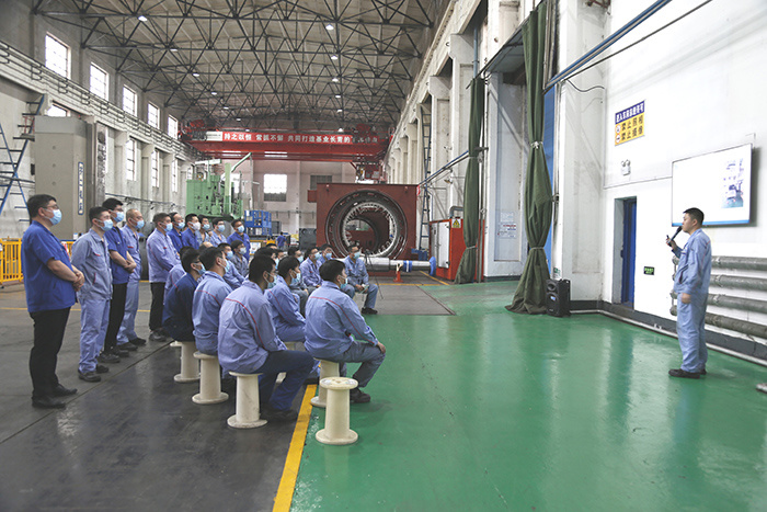 ¡¡¡¡ÉÁÖÎè»á¹ÙÍø¹É·Ý¼¼Ê¦¡¢³å¼ô³µ¼ä³å²Û¹¤¼æ°à×鳤ÍõÀö÷ÔÚ³å²Û×Ô¶¯»¯ÏÖ³¡£¬Îª°à×éÖ°¹¤½Ìѧ¡¶³å²Û»ú²Ù×÷¹æ³Ì¡·¡¶×Ô¶¯Ïß°Ú±Û»úеÊÖ²Ù×÷¹æ³Ì¡·£¬²¢¶Ô³å²Û»úÊý¿Ø½á¹¹¹¦Ð§¡¢×Ô¶¯Ïß°Ú±Û³ÌÐòת»»¼°µ÷ÊÔÊÖÒÕÒªµã¾ÙÐÐÏàʶ˵ÓëÑÝʾ¡£