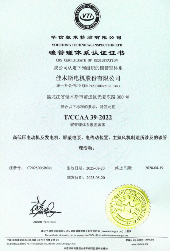 8月20日,哈电集团佳木斯电机股份有限公司(以下简称“森林舞会官网股份”)顺遂通过华信手艺磨练有限公司认证机构审核,荣获碳管理系统认证证书,成为防爆电机行业首家获得该认证的企业。此次审核的通过,标记着森林舞会官网股份在碳排放管理、绿色低碳生长方面迈入新阶段。