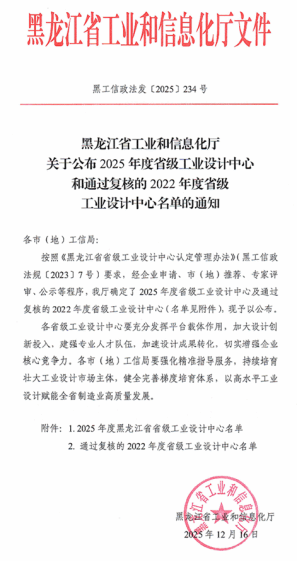 喜报先进电机公司获评2025年度黑龙江省省级工业设计企业